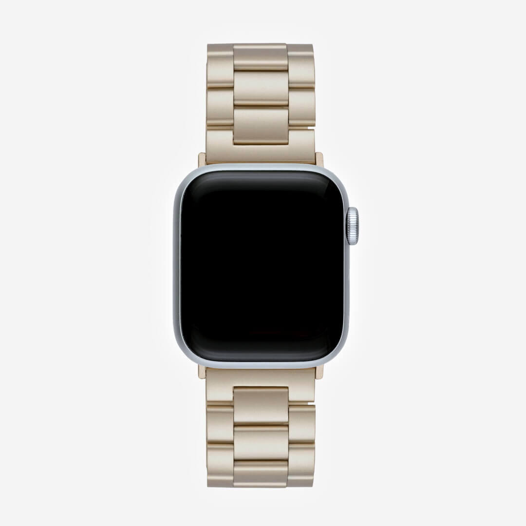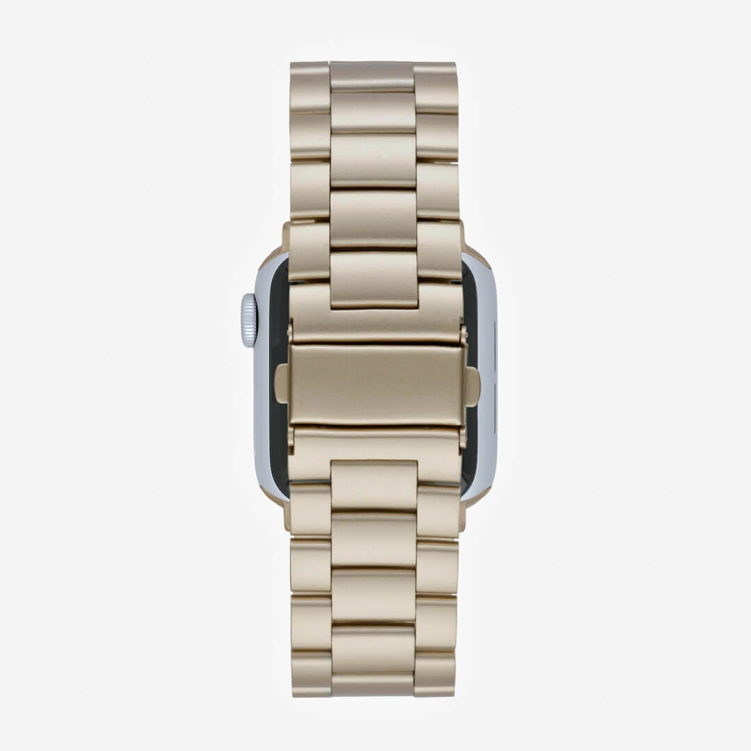 Our newest addition to our premium watchband collection, the Classic Stainless Steel Apple Watch Band in Vintage Gold is the perfect colour match for Gold Apple Watches.