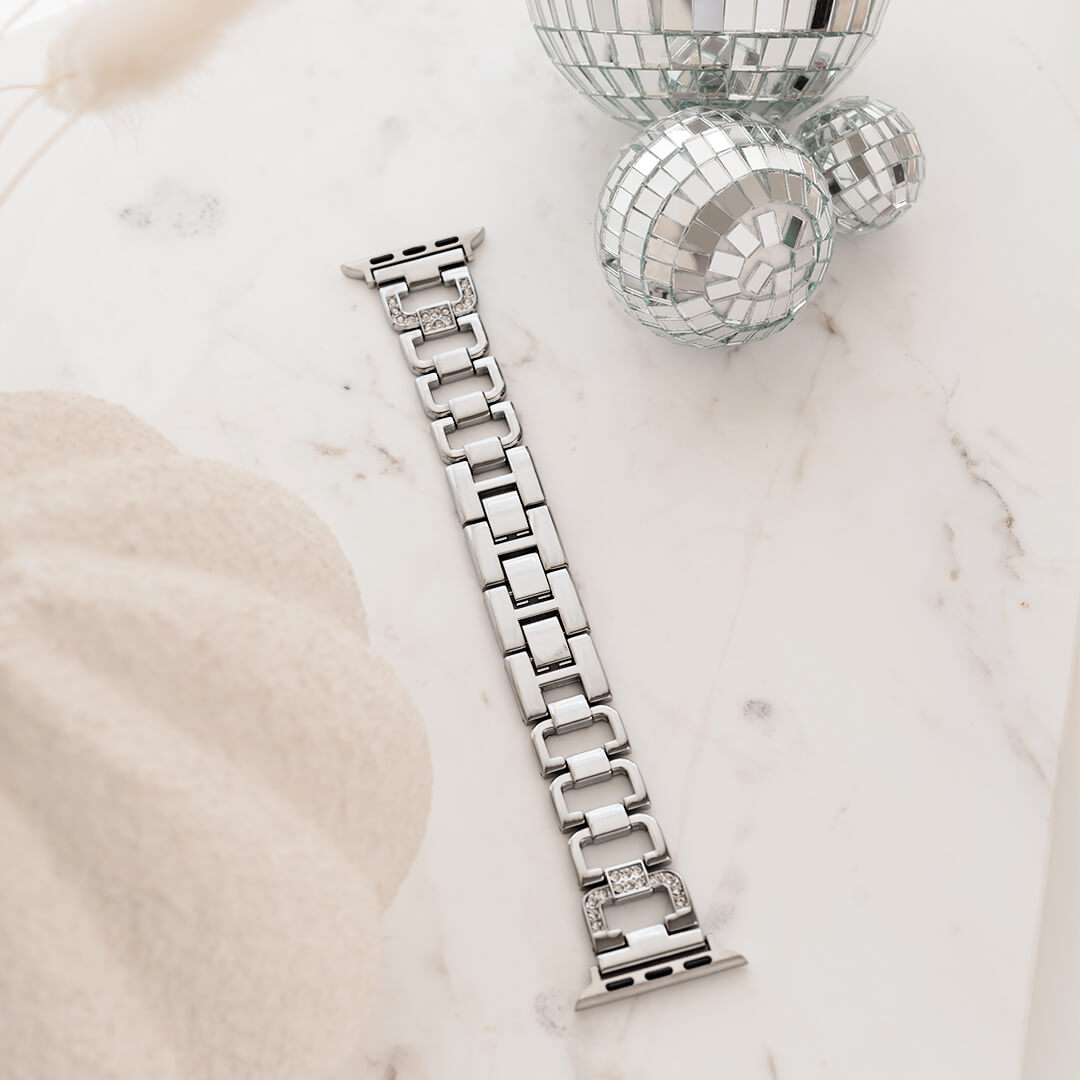 Crafted from premium stainless steel and inlaid with zircon rhinestone crystals, this watch band exudes glamour that will have you ball gown ready from the moment you place it on.  Need to resize your band to make it smaller? Simply flick open the clasp links with your nail – no tool required!