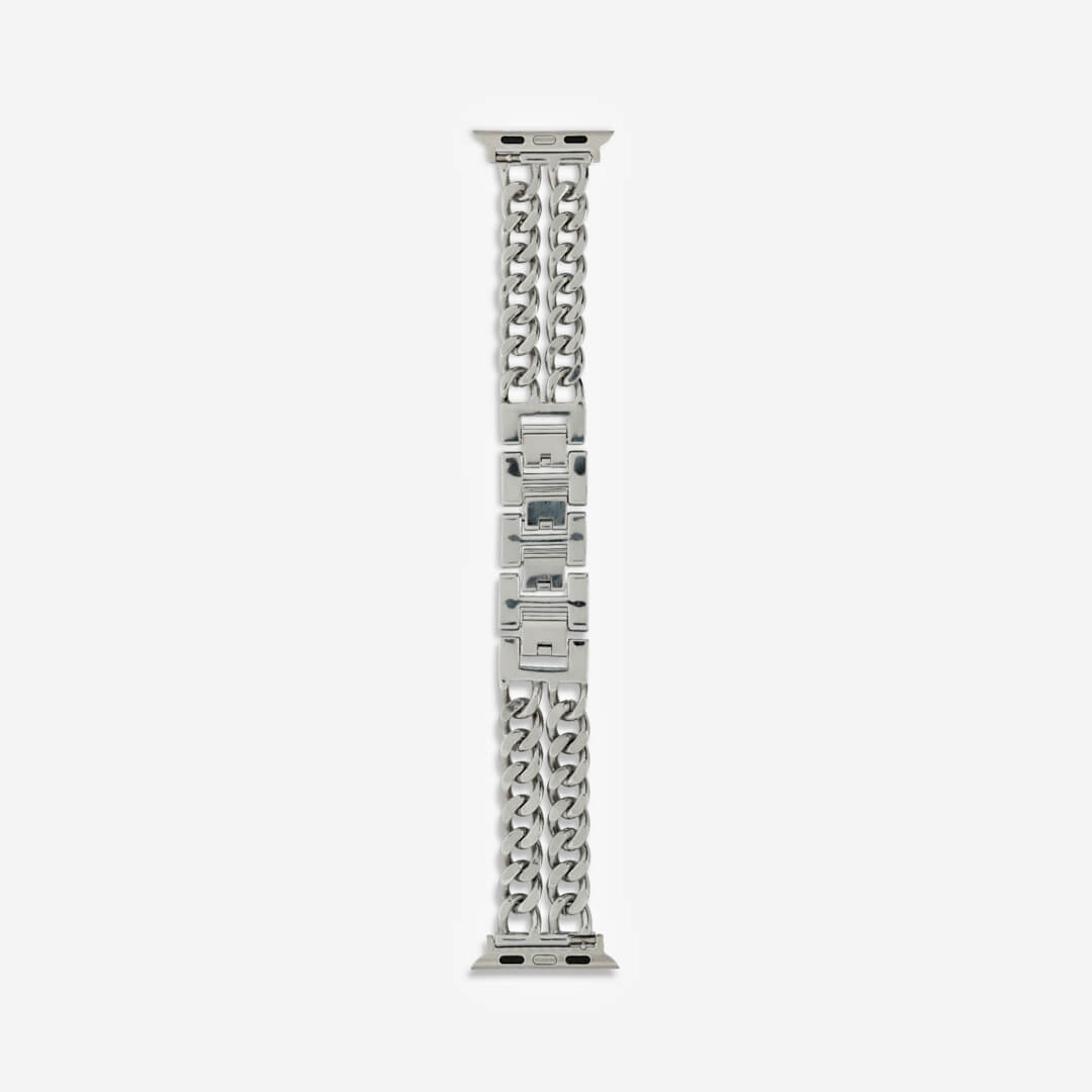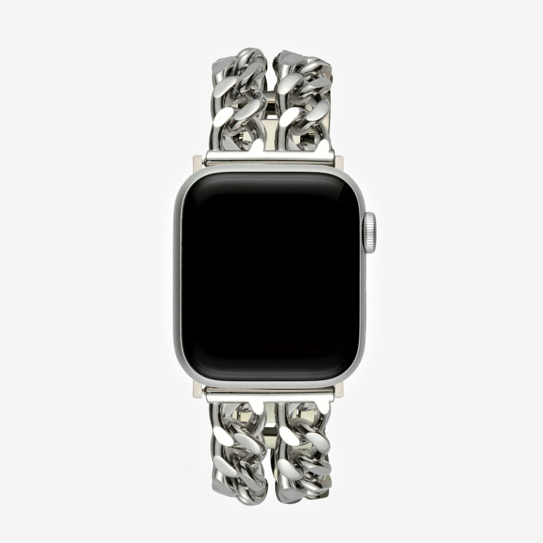 Crafted from premium stainless steel and twisted into elegant double link chains, this watch band works twice as hard to elevate your Apple Watch. Need to resize your band to make it smaller? Simply flick open the clasp links with your nail – no tool required! Dimensions Fits Wrists 150mm – 195mm Note: Product includ
