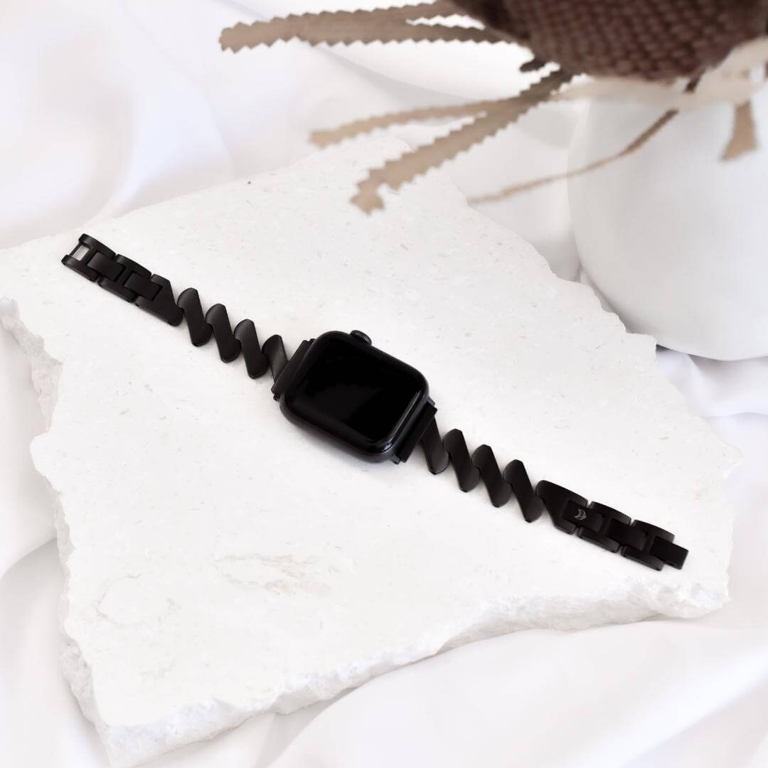 Meet your new favourite watch band. Perfect to add a touch of luxe to any outfit, wear it on repeat to the office, bar and everywhere in between. Crafted from premium stainless steel and coated in a luxe black finish to elevate your Apple Watch into a piece of fine jewellery. Our commitment to high quality ensures your