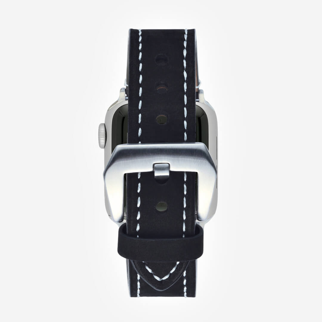 Personalise your favourite gadget with a premium leather watch band made to seamlessly fit your Apple Watch. Distressed leather and retro stitching give this excellent watchband its unique rustic look.   Dimensions 38mm 40mm 41mm 42mm (S10 & S11): Fits wrists 160mm – 210mm 42mm (S1-S3) 44mm 45mm 46mm